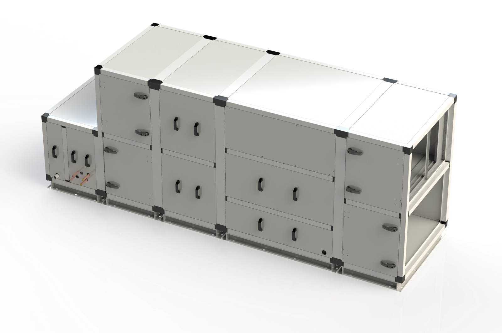 We make the chambers in question upon request for the needs of residential or industrial ventilation, and we can offer and have so far delivered on the HR and EU markets versions from simple recuperation with a water or freon-powered heater and refrigerator for the needs of halls, up to recuperation with an integrated heat pump for indoor pools.